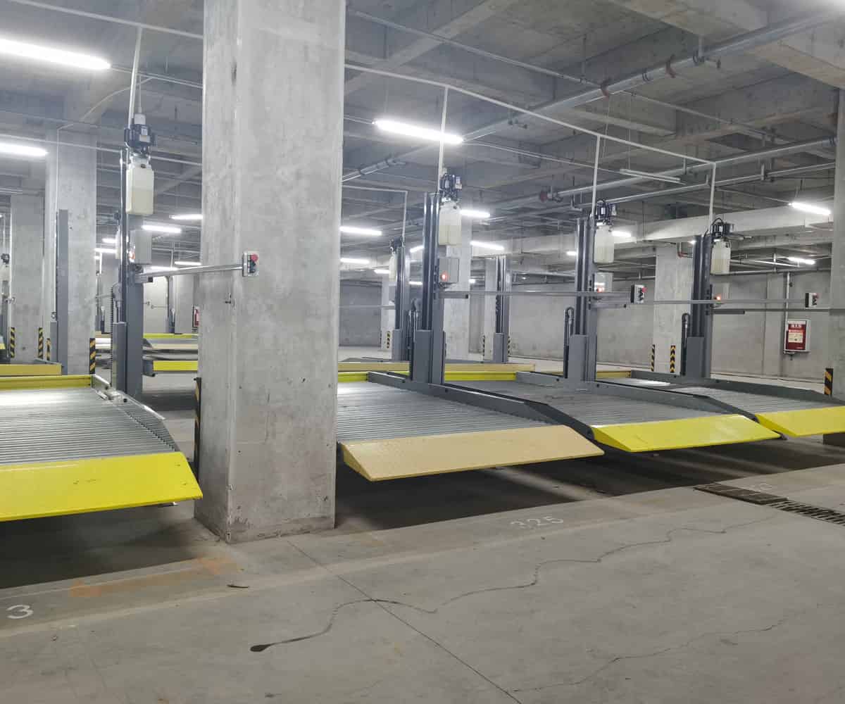 地下室俯仰机械停车库工作原理俯仰家用立体车库设备传动系统采用液压传动的方式,液压泵利用高压油推动液压缸,驱动载车板上升或下降,达到存取车辆的目的。地面停车位,待载车板上升到位后,即可驶入或驾出车辆。